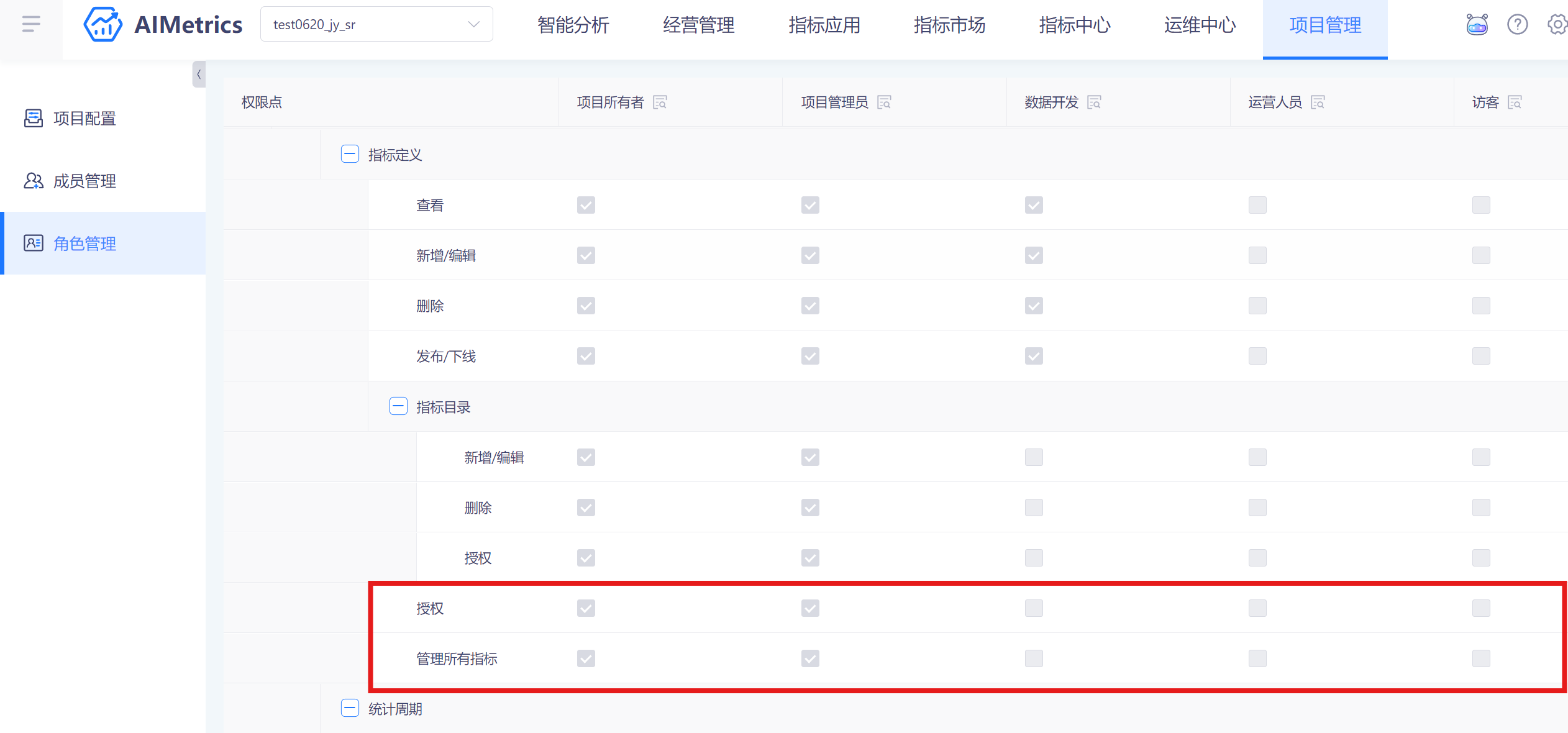 角色管理权限点中有「授权」权限的用户,可以对指标进行授权操作。