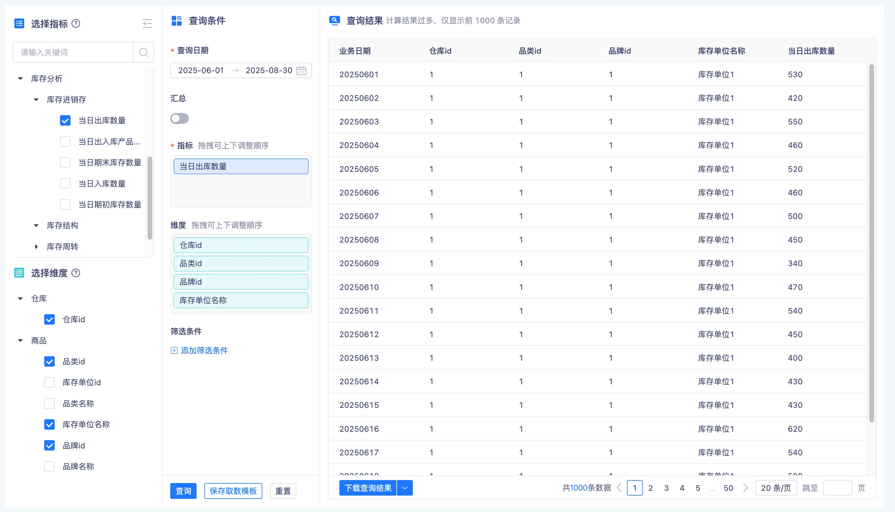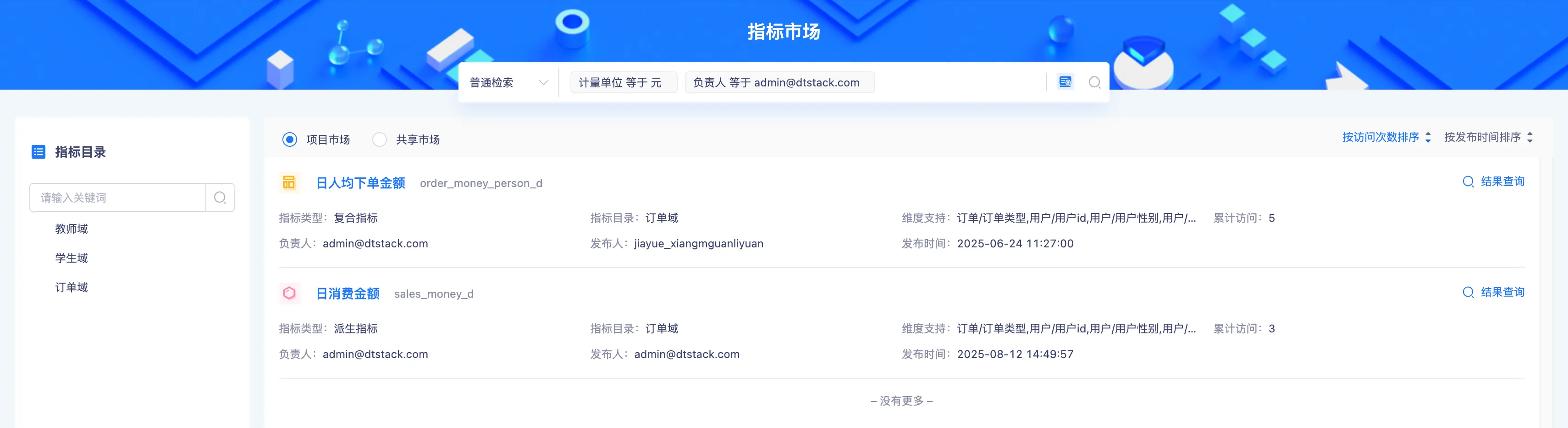 基于指标属性做筛选后,会返回同时满足筛选条件的指标进行展示: